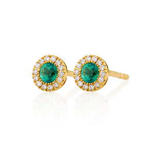 K18YG スフィア ファセット エメラルド ダイヤモンド ヘイロー ピアス 3mm