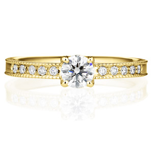 K18YG ミルグレイン 4ポイント サイドストーンリング for 0.3ct