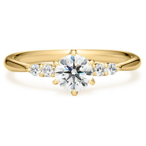 指輪部分が全部イエローゴールドで左右にも小さいダイヤモンドがふたつずつあるのがとってもお気に入りです。写真は昼間の室内で照明なしで撮りました。