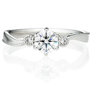 PT900 ミルグレイン 6ポイント ドットサイドストーンリング for 0.3ct