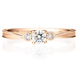 K18PG ミルグレイン 4ポイント サイドストーン ダイヤモンドリング for 0.2ct