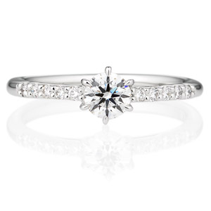 未来の結婚指輪を思い浮かべて。重ね付けを美しくする細身のソリティアタイプの婚約指輪