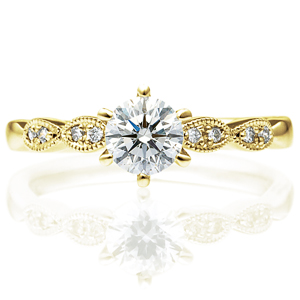 K18YG ミルグレイン サイドストーンリング for 0.5ct