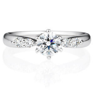 シンプルに輝きを添えたデザインにひと目で惹かれて。二人らしいサイドストーンの婚約指輪