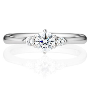 シンプルに輝きを添えたデザインにひと目で惹かれて。二人らしいサイドストーンの婚約指輪