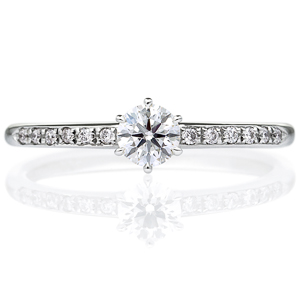未来の結婚指輪を思い浮かべて。重ね付けを美しくする細身のソリティアタイプの婚約指輪