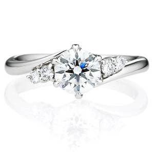 シンプルに輝きを添えたデザインにひと目で惹かれて。二人らしいサイドストーンの婚約指輪