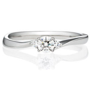 シンプルに輝きを添えたデザインにひと目で惹かれて。二人らしいサイドストーンの婚約指輪