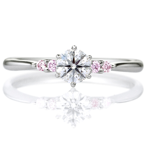 PT900 サイドストーン ピンクダイヤモンドリング for 0.3ct