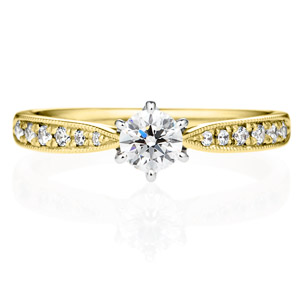 未来の結婚指輪を思い浮かべて。重ね付けを美しくする細身のソリティアタイプの婚約指輪