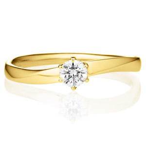 未来の結婚指輪を思い浮かべて。重ね付けを美しくする細身のソリティアタイプの婚約指輪