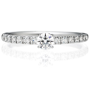 未来の結婚指輪を思い浮かべて。重ね付けを美しくする細身のソリティアタイプの婚約指輪