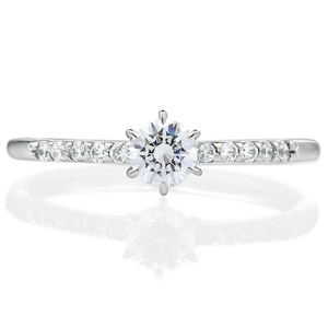 未来の結婚指輪を思い浮かべて。重ね付けを美しくする細身のソリティアタイプの婚約指輪