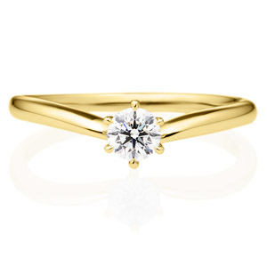 未来の結婚指輪を思い浮かべて。重ね付けを美しくする細身のソリティアタイプの婚約指輪