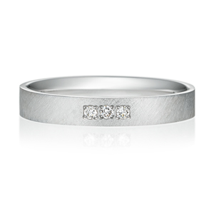付け心地がとても良く、何度も眺めてしまいます。3粒のダイヤがさり気なく、ミルグレインも本当にきれいで見るたびに幸せな気持ちになります。手が大きいので3ミリを選びましたが正解でした。