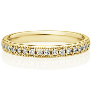 K18YG オーバル ダイヤモンド ハーフエタニティ リング ミルグレイン 2.6mm 10-14.5