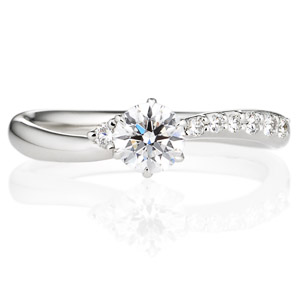 PT900 ウェーブライン サイドストーン リング for 0.3ct