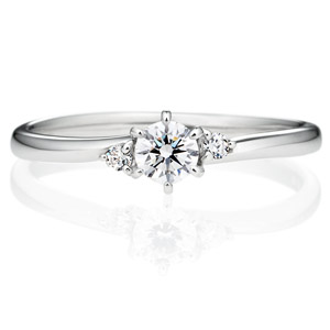 サイドストーンが寄り添う2人のような感じがしていいという彼女の意見もあり、この指輪を購入しました。