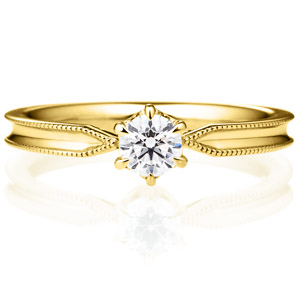 K18YG キャッスル ソリティア リング ミルグレイン 0.3ct