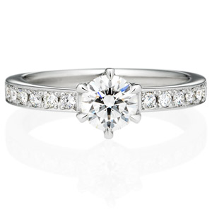 0.5ctで探していましたが、リングのサイズを0.5ct用から0.3ct用に下げて、0.3ct用に載せられる大きめのダイヤを選んだほうがダイヤが大きく見えるとアドバイスしていただき、0.42ctを買うこととなりました。