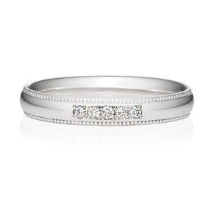 普段使いしやすいものと思って選びましたが、適度な存在感で主張しすぎることもなく、ミルグレインのおかげか合わせやすいデザインです。つけてみるとカジュアル感もあり、基本的にお出かけの際には身に付けています。引っかかりはあまりないのですが、すでに少し傷がついてしまっているようで、パラジウムの多いものを選びましたが致し方のないものなのかなと…。まだ購入していませんが、マリッジリングと重ね付けするのがとても楽しみです。