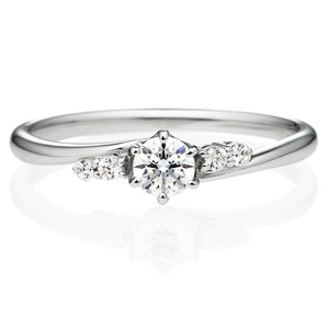 ダイヤが大きく見えてかわいらしい。シンプルなリングなので、結婚指輪との重ね付けも◎
