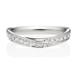 ゆるやかなU字になっており、シンプルなストレートの指輪よりも個性が出て素敵です。かといって個性的すぎるわけではないので、仕事中でも問題なくつけられます。良い指輪が見つかって良かったです。
