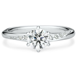 願いを叶えてくれる流れ星をイメージし『メテオール』と名付けました。メビウスの輪のようなモダンなアームが特徴の婚約指輪。ストレートなシルエットに、ひねりを加えながら流れる様に留められたグラデーションのメレダイヤモンドの煌めきが、センターダイヤモンドをより鮮やかに引き立たせます。カジュアルな着け心地でありながら、手の動きに合わせて光を放つ繊細な輝きと立体感のあるフォルムが、指のラインを美しく上品に演出してくれます。