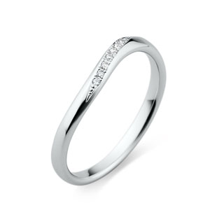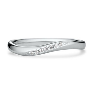 いつも自然体でいること / 緩やかなウェーブラインのマリッジリング(結婚指輪)にほんの少しだけ高く作られた丘に、極小さなダイヤモンドを流れに沿って繊細に彫留めしました。シンプルに要素をそぎ落とした飾らない柔らかなデザインの中で、 風になびくようにきらきらと揺れて華やかに、優しい手元を演出します。
