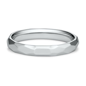 輝くミラー仕上げと多面のフォルムの組み合わせが、モダンで品のある手元を演出する結婚指輪『ヴィオン』。一見ランダムに見える面のシルエットは、自然界に見られる、強さと美しさを備えた形「ハニカム構造」から着想を得ています。異なる道を歩んできた二人が出会い、偶然と必然を積み重ね、共に一つのかけがえのない物語を築いていくという奇跡。そして、その強い絆がずっと続いていくようにという願いを感じられるデザインです。