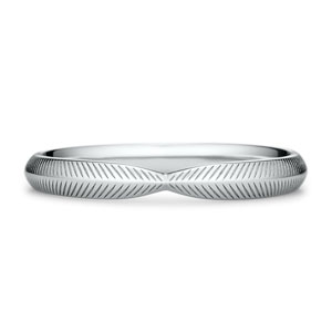 太陽を受けてきらめく、月桂樹の葉をイメージした結婚指輪『ソリーフ』。永遠の愛の象徴として知られる月桂樹の葉が対となり、お互いを抱きしめるように、指に優しく寄り添います。葉脈を思わせるテクスチャーは、職人が細部までこだわり生み出したもの。その輝きは上品で繊細です。ふっくらとしたフォルムはフィット感があり、一本でも重ね付けでも、心地よく身に着けていただけます。(こちらのリングはデザイン上リング内側刻印の文字数に制限がございます。サイズ#5〜24半角英数字で20文字、#4〜4.5 半角英数字で18文字)