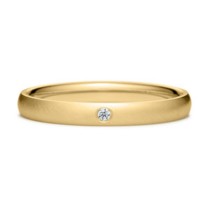 洗練されたデザインと極上の着け心地で人気の結婚指輪『オーバル サティーン』に、ひときわ煌めく一粒ダイヤモンドを添えました。上質なサテン生地を思わせるしっとりとした仕上げと丸みを帯びたシルエットが、光を受けるとやわらかく落ち着いた輝きを放ち、美しい手元を演出します。シンプルだからこそ細部までこだわり抜いた、自信の逸品です。