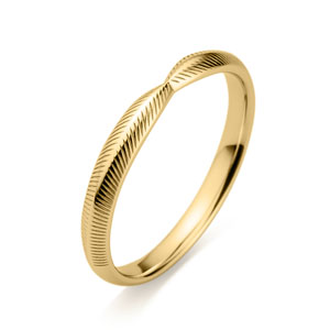 太陽を受けてきらめく、月桂樹の葉をイメージした結婚指輪『ソリーフ』。永遠の愛の象徴として知られる月桂樹の葉が対となり、お互いを抱きしめるように、指に優しく寄り添います。葉脈を思わせるテクスチャーは、職人が細部までこだわり生み出したもの。その輝きは上品で繊細です。ふっくらとしたフォルムはフィット感があり、一本でも重ね付けでも、心地よく身に着けていただけます。(こちらのリングはデザイン上リング内側刻印の文字数に制限がございます。サイズ#5〜24半角英数字で20文字、#4〜4.5 半角英数字で18文字)