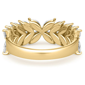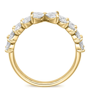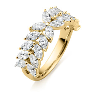 マーキスカットのダイヤモンドを、永遠を象徴する月桂樹の葉をイメージしあしらったエタニティリング『フォリア』。ラボグロウンダイヤモンドならではの端正な輝きと圧倒的な存在感、そして生命の息吹を思わせる立体感ある造りが、指元にモダンさと堂々とした風格をもたらして。ごく小さく仕上げた爪によって、マーキスカットの優美な表情を存分に堪能していただけます。※こちらのリングはデザイン上リング内側刻印の文字数に制限がございます。サイズ#4〜17半角英数字で6文字